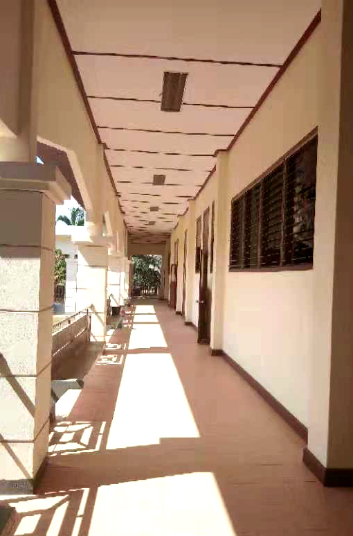 這是我上課的教學(xué)樓——語(yǔ)言學(xué)院,遵循著(zhù)“看人先看臉”的原則,我們先看一下它的外在環(huán)境??催^(guò)前幾期介紹的小伙伴不難發(fā)現,老撾國立大學(xué)的教學(xué)樓基本都是紅頂白墻,活潑跳躍的顏色彰顯著(zhù)這所學(xué)校的朝氣。