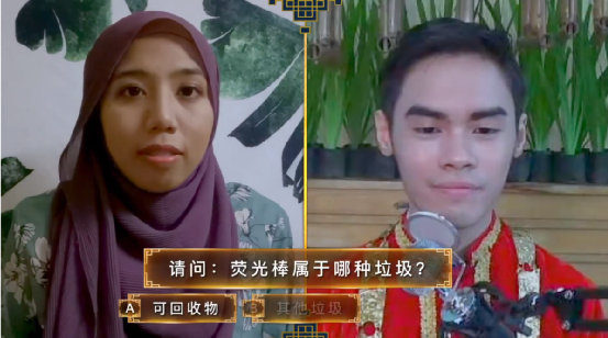 來(lái)自馬來(lái)西亞(左)以及印尼(右)的選手在參加由中國舉辦的漢語(yǔ)競賽《漢語(yǔ)橋》