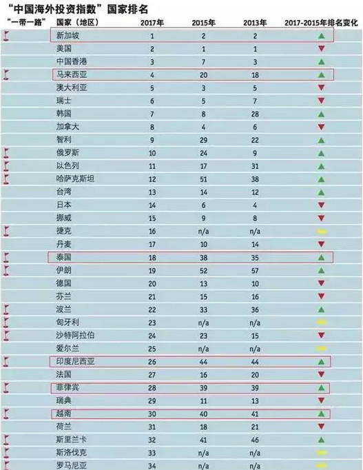 根據最新發(fā)布的中國海外投資指數來(lái)看,東盟國家排名第一。2017年,新加坡超越美國排名第一。