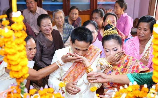 感恩儀式是婚禮上一項重要程序,過(guò)程也非常復雜,新郎新娘要感謝雙方父母養育之恩,雙方家長(cháng)要宣講老撾的“十二風(fēng)”、“十四俗”,強調夫妻互敬之德,提醒雙方尊敬老人。