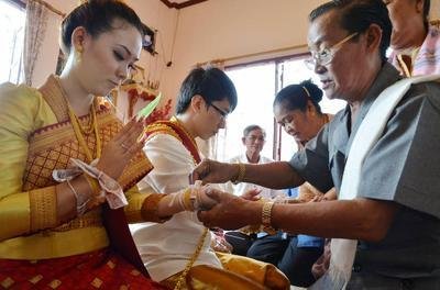 與中國不同,老撾流行倒插門(mén),即男方主動(dòng)到女方家里做上門(mén)女婿。婚禮也是由女方家操辦,這與老撾女性的社會(huì )地位日益提高息息相關(guān)。