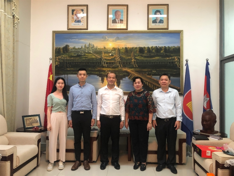 (左一新媒體中心韋清清女士、左二國際部主任陸士偉先生、中間廣西金沛教育執行董事粟宥朝先生、右二柬埔寨王國駐南寧總領(lǐng)事輝蕾娜女士 合影留念)