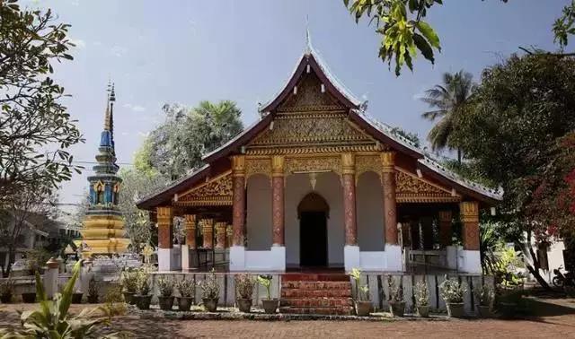 邁佛寺是瑯勃拉邦最著(zhù)名的寺廟之一,也是這里最大,裝飾最華麗的寺廟。寺廟建于18世紀,座落于王宮博物館附近。寺內供奉著(zhù)一座綠寶石鑄成的佛像。邁佛寺的建筑風(fēng)格比較特別,其五層檐的佛殿遵循了典型的瑯勃拉邦風(fēng)格,但通常建在旁邊的回廊卻建在了山墻的位置,很不尋常。邁佛寺曾經(jīng)毀于入侵者手中,除了主殿外其他建筑大部分是重修的。寺廟的前廊有裝飾華麗的柱子和奢侈的純金浮雕。浮雕敘述了佛祖生平和老撾雨神的故事,也有來(lái)自羅摩衍那和鄉村生活的場(chǎng)景。在重要的節日里,勃拉邦佛將從皇宮博物館里請出放在這里供信徒們參拜。