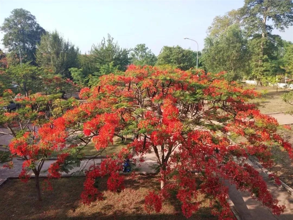 宿舍區有一片小森林,午后或者晚間,可以跟朋友一起散步,特別是炎熱的夏季,感受習習涼風(fēng),整個(gè)人神清氣爽,四月的宿舍樓下環(huán)境很迷人的,樹(shù)木長(cháng)滿(mǎn)了紅花,就像火熱的天氣,好像在宣告著(zhù):夏天來(lái)了