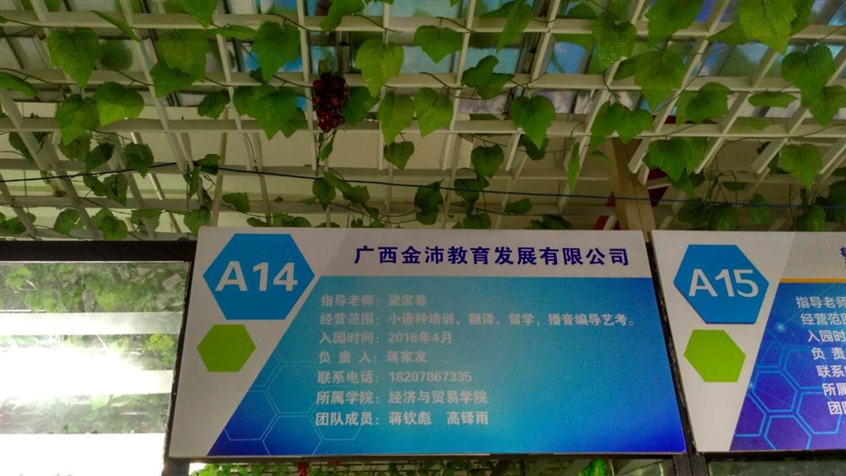 金沛教育財經(jīng)學(xué)院校區位于廣西財經(jīng)學(xué)院相思湖校區大學(xué)生創(chuàng )新創(chuàng )業(yè)孵化基地A14