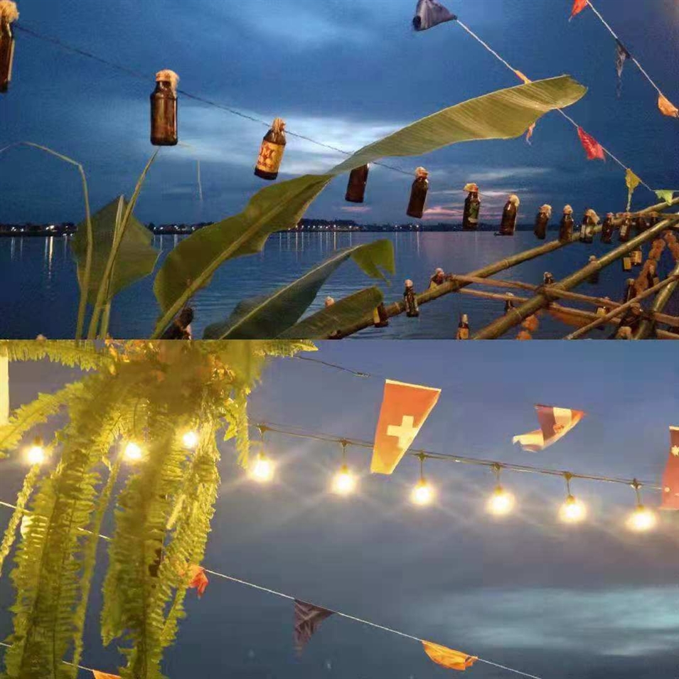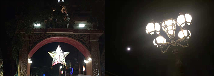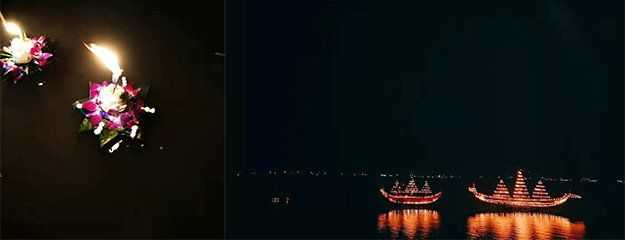 水燈是用象征著(zhù)力量和財富的芭蕉葉折疊制成的,有的折成葵花狀,有的折成寶塔狀,折好的水燈上會(huì )插上鮮花和香燭,燃放爆竹之后,人們將香燭點(diǎn)燃,緩緩放入水中。剎那間,映著(zhù)傾城月色,河面上燈火萬(wàn)點(diǎn),忽遠忽近,隨波漂蕩,蔚為壯觀(guān)。